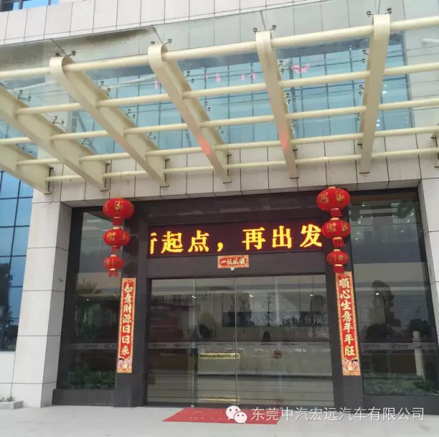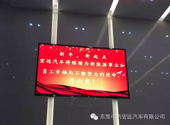辦公樓大門口LED屏滾動中“新起點 再出發(fā)”的鮮艷大字,寓意著宏遠汽車事業(yè)將繼續(xù)以自信飽滿的熱情、拼搏進取的精神,朝著既定的遠大目標踏步向前!辦公樓大廳的大屏幕顯示著“宏遠汽車將繼續(xù)為新能源事業(yè)和員工幸福而不懈努力的”的醒目標語,鞭策企業(yè)不僅要助力中國綠色經(jīng)濟發(fā)展,更要為員工的成長和幸福創(chuàng)造更多的平臺和機會,共同發(fā)展,共享事業(yè)。