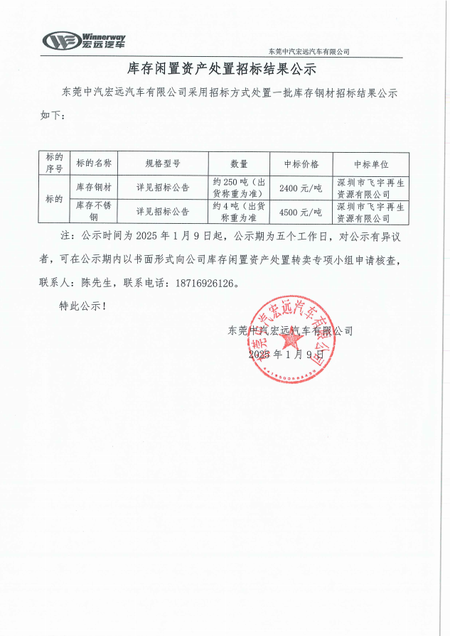 庫(kù)存閑置資產(chǎn)處置招標(biāo)結(jié)果公示